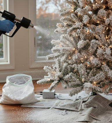 You can create your own snow effect using simple materials such as baking soda, cornstarch, or salt mixed with a mild adhesive. Combine these with a touch of glitter for extra sparkle. Apply the mixture gently to your tree with a sifter or mesh strainer for a fine, realistic snow effect.