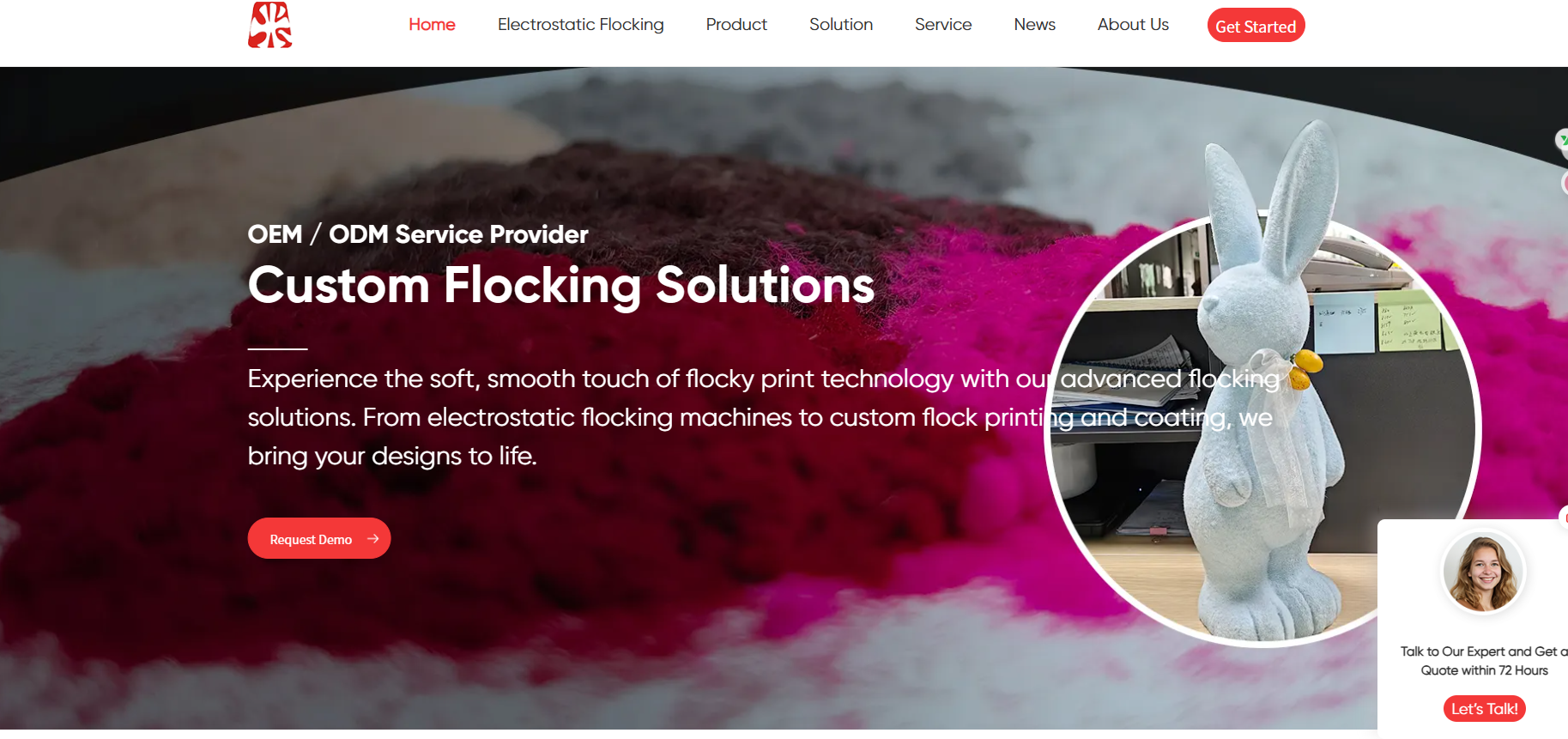 Zhang's Flocking is a leader in the flock printing industry, offering high-quality flocking materials and machines for various textile applications. Whether you're looking for durability, texture, or vibrant designs, Zhang's provides tailored solutions that meet your specific needs. With advanced technology and a wide selection of flock materials, Zhang's Flocking ensures that your textile products will stand out in both design and quality.