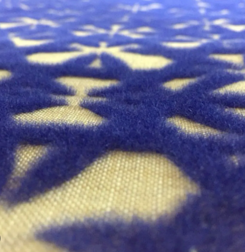 4.Flock Application: The flock fibers, which are typically made of rayon or nylon, are electrostatically charged and then sprayed or sprinkled onto the adhesive-coated areas. The fibers stand upright, creating a plush, velvet-like texture.
