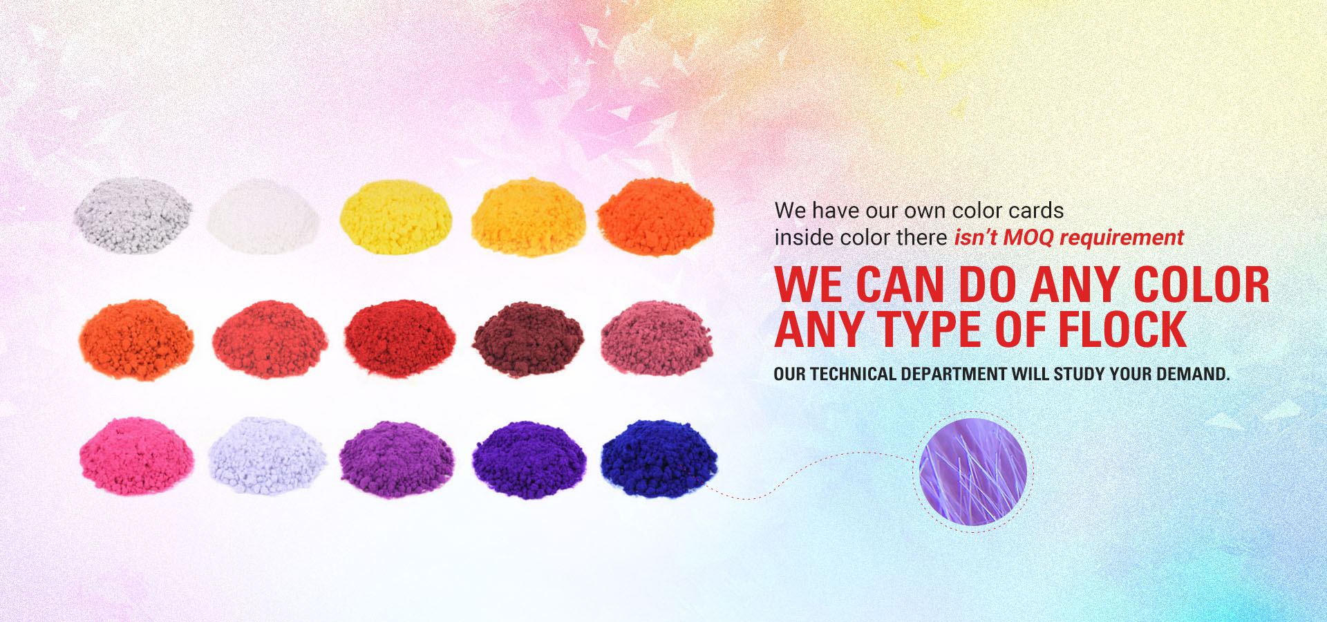 We offer a selection of over 100 colors for our flocking