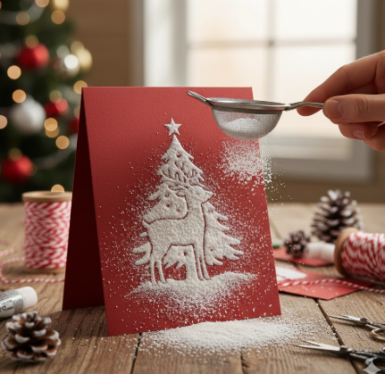 Using flocking powder on greeting cards or other paper crafts adds a soft, raised texture to certain areas, making them stand out. To use flocking powder on cards: